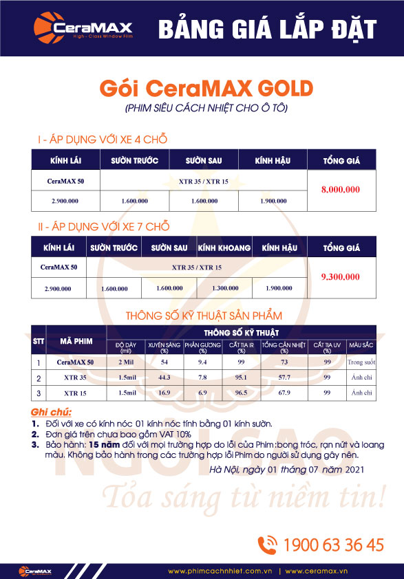 | Gói CeraMAX Gold xe 7 chỗ | 9.300.000 đồng |