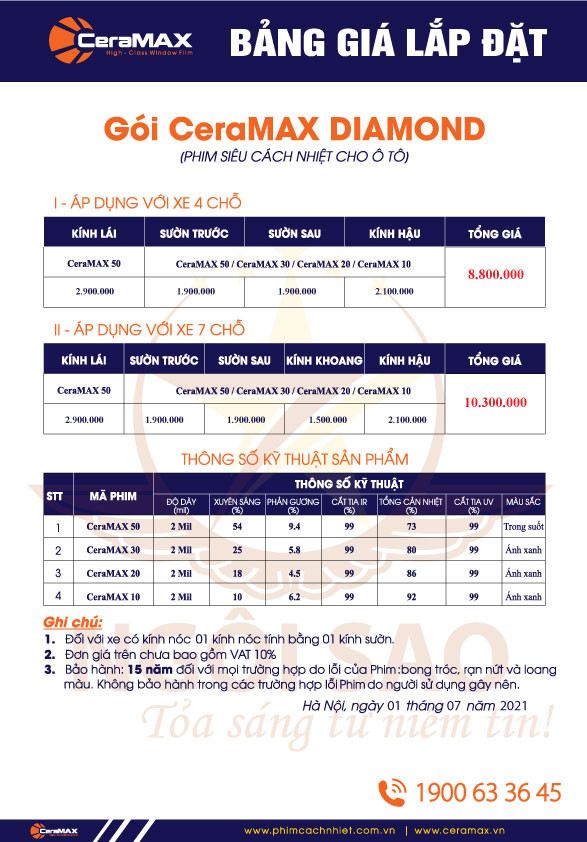 | Gói CeraMAX Diamond xe 7 chỗ | 10.300.000 đồng |